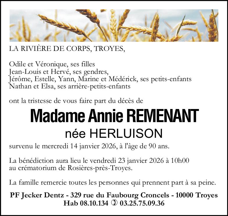 Madame Annie REMENANT née HERLUISON
